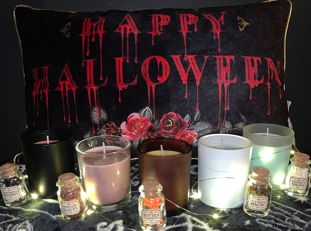 Vampire Love- black jar, Color: Dark scarlet, Scent: Black Cherry Merlot- is a boozy, sophisticated twist to the classic black cherry. Top notes of black currant and apple brighten the red wine and black cherry heart, infused with natural essential oils, including patchouli, nutmeg, and davana.