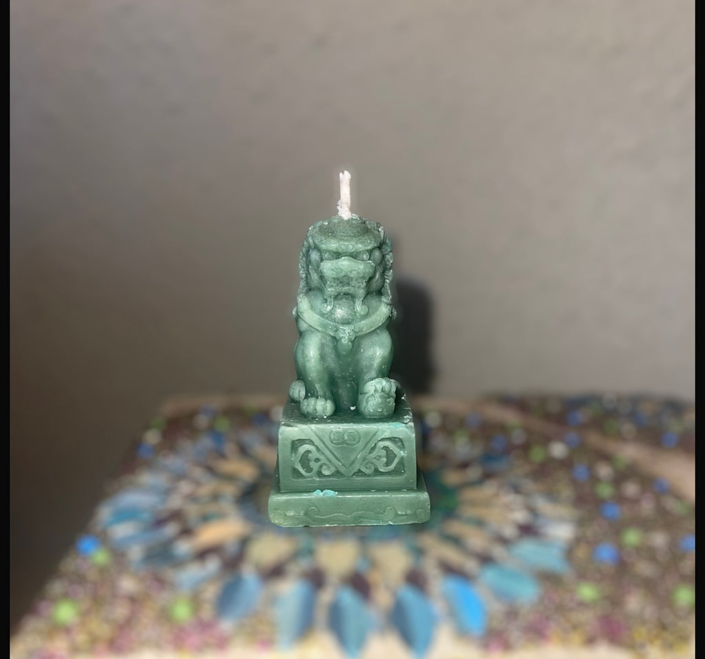 This candle is small but gives positive energy of calmness and also STRENGTH & CORAGE! You will feel refreshed & recharged when burning this eucalyptus essential oil infused Chinese Lion candle.