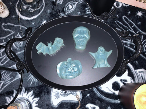 Graveyard- Scent: Fresh Dirt- the aroma of freshly dug dirt, Frankincense & Myrrh- Hints of citrusy bergamot and amber open up to a heart of resinous. The wood and incense notes are softened by powder and oud in the base. Olibanum, patchouli, and coriander seed essential oils reinforce the earthiness.