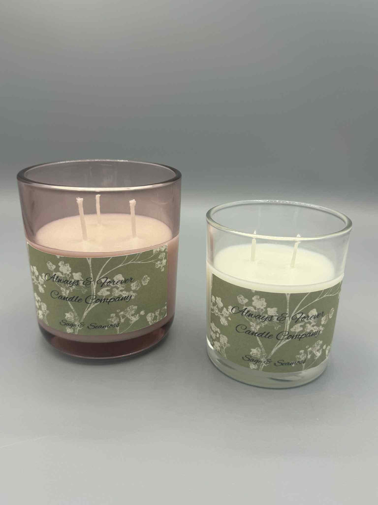 Indulge in our New 2026 Spring Collection "Sage & Sea moss" These 3 and 2 wick candles are very strong in aroma, filling a room with long lasting scent. This candle has a very strong scent throw. Slow burning for long lasting scent throw and burn time. These candles have a clan, fresh and sharp aroma that is both grounded and invigorating.